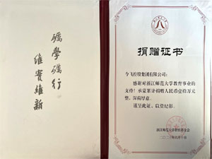 葛炳灶先生向浙江工业大学捐赠荣誉证书