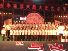 今飞员工在建厂50年改制10周年晚会上表演小品
