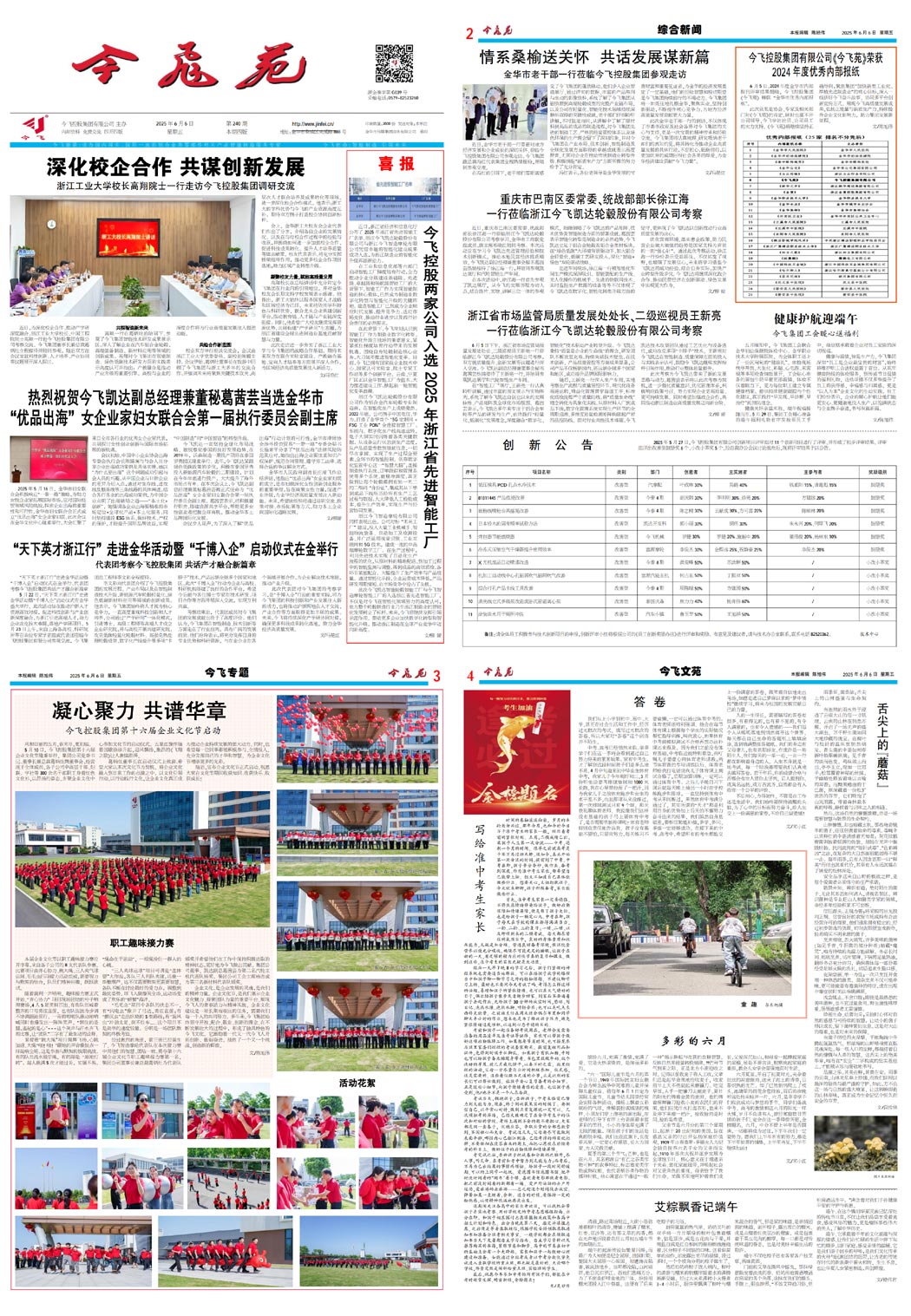 深化校企合作 共谋创新发展——浙江工业大学校长高翔院士一行走访今飞控股集团“天下英才浙江行”走进金华活动暨“千博入企”启动仪式在金举行,代表团考察今飞控股集团 共话产才融合新篇章喜报|浙江今飞两家公司入选 2025 年浙江省先进智能工厂,引领行业智能化变革热烈祝贺今飞凯达副总经理兼董秘葛茜芸当选金华市“优品出海”女企业家妇女联合会第一届执行委员会副主席情系桑榆送关怀 共话发展谋新篇——金华市老干部一行莅临今飞控股集团参观走访创 新 公 告健康护航迎端午,今飞集团工会暖心送福利喜讯 | 《今飞苑》荣获2024年度金华市内部报刊协会优秀内部报纸重庆市巴南区委常委、统战部部长徐江海一行莅临浙江今飞凯达轮毂股份有限公司浙江省市场监管局质量发展处处长、二级巡视员王新亮一行莅临浙江今飞凯达轮毂股份有限公司考察凝心聚力 共谱华章——今飞控股集团第十六届企业文化节启动多彩的六月艾粽飘香记端午写给准中考生家长答卷舌尖上的“蘑菇”