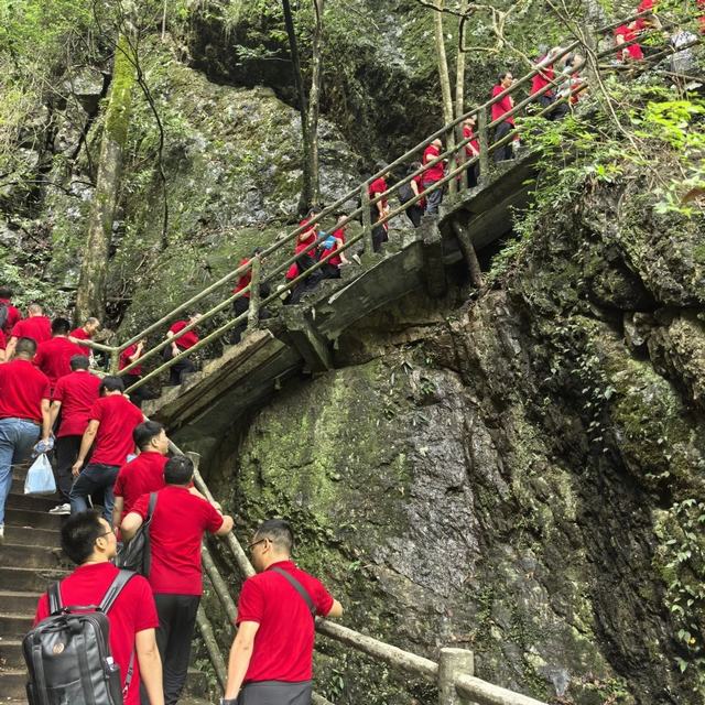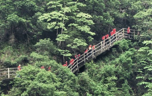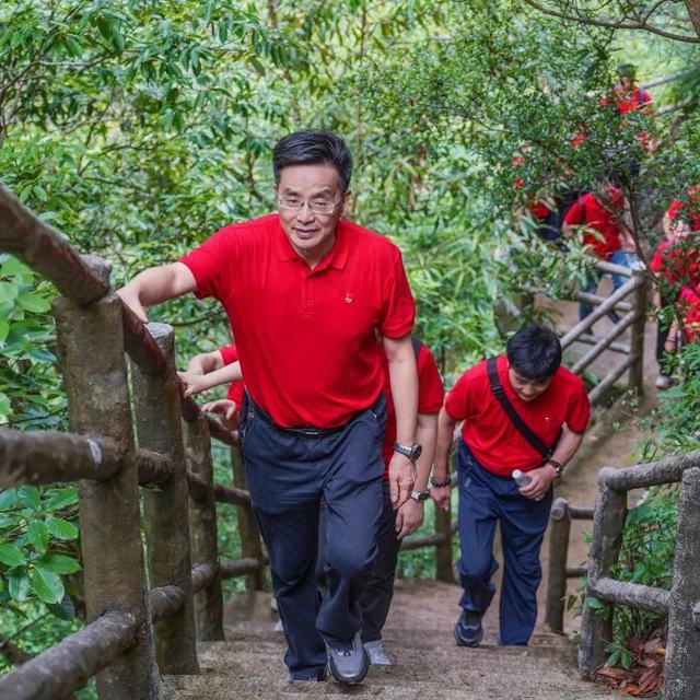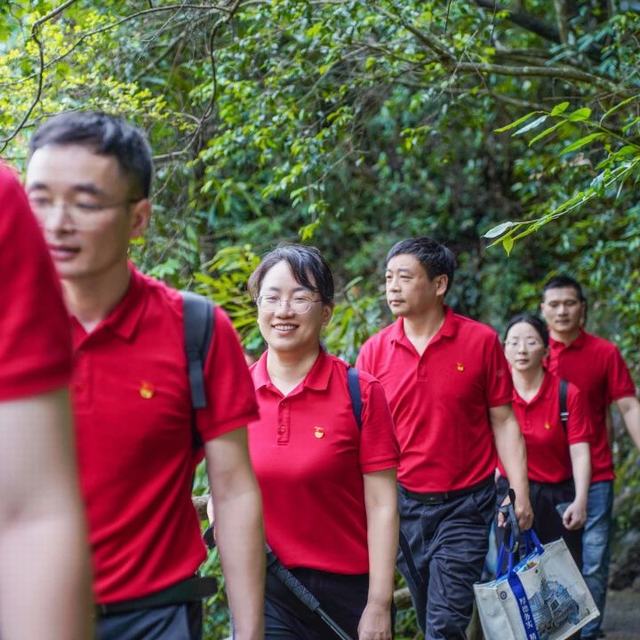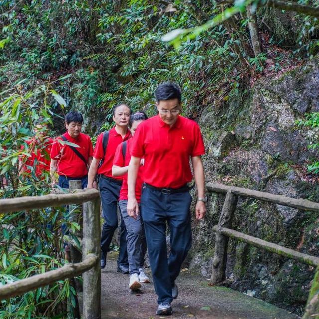 雨后的牛头山,远山含黛,近岭浮青,犹如一幅水墨丹青。密林深秀,光影斑驳,山风送来徐徐清凉。翻开浙江省党史,牛头山的武装游击战给国民党统治当局沉痛打击。忆苦思甜,不忘先烈,重走红军路,今飞党员队伍如一条跃动的红色脉搏,向着海拔1560米的峰顶进发。淋漓汗水映照担当,铿锵脚步丈量信念,登顶的每一步都印证着今飞党员队伍“奋进同行”的信念与力量,彰显党员在困难面前挺膺在前、带动全员的标杆力量。