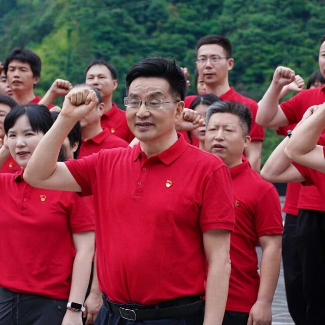 葛炳灶书记步履坚定,始终走在队伍最前列。山道崎岖处,他驻足鼓劲;险坡当前时,党员们相互扶持的臂膀就是最稳固的阶梯。当鲜红党旗在牛头山之巅迎风招展,一场庄重的精神洗礼随即展开。全体党员肃立于党旗前重温入党誓词,铿锵誓言在山谷间久久回荡,叩击着每一位党员的心扉。葛炳灶书记在讲话中深刻指出:党员的一言一行,就是最生动的企业文化。登顶牛头山,锤炼的是党员率先垂范、勇担重任的先锋意志。要把这种‘站排头、争一流’的攀登精神带回岗位,在技术革新、管理优化、安全生产中亮身份、树标杆、作表率,引领全体员工养成精益求精的工作作风。党员们将攀登的体悟转化为生动的“行走党课”。这不仅是体能的挑战,更是精神的淬炼。唯有将党建势能转化为发展动能,把组织优势锻造成攻坚铁拳,方能推动今飞在转型升级的征途上行稳致远。