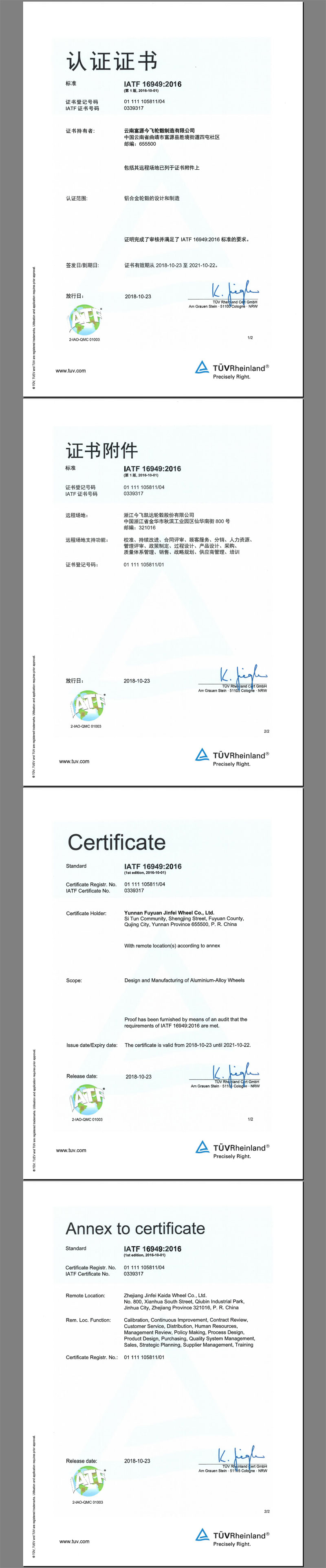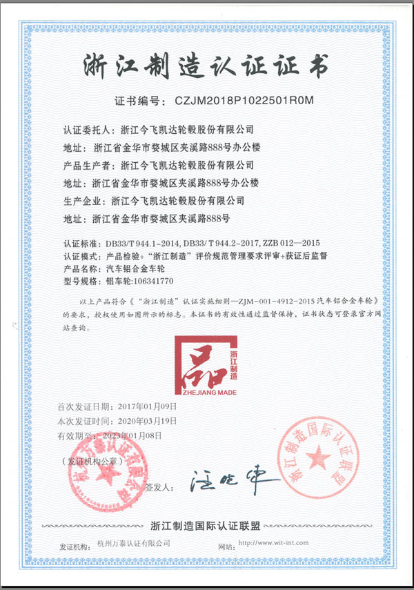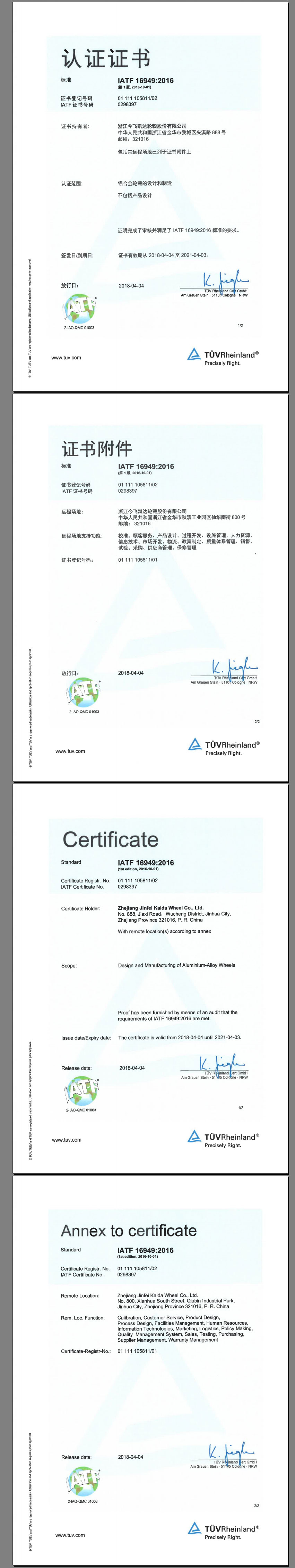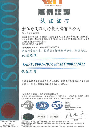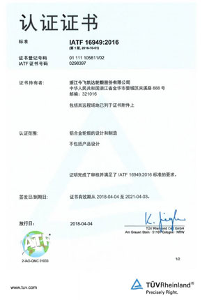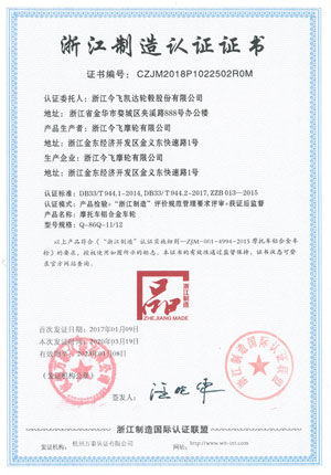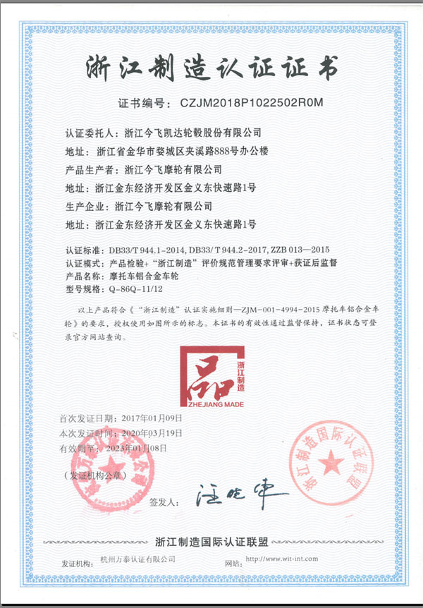 公司明确提出 “追求产品零缺陷,优化服务创品牌”的质量方针,在生产各工序、环节建立了严格的质量控制体系,1998年公司就通过了IS09001质量体系认证,2004年通过了QS-9000、ISO/TS16949质量保证体系审核,又先后通过了美国SFI、日本VIA实验室认证、德国TUV认证,并通过了北京奔驰、一汽夏利、昌河铃木、豪爵铃木、钱江集团、新大洲本田等公司的第二方审核和美国戴姆勒-克莱斯勒、美国哈雷、意大利比亚乔等国际整车厂商的考评。于2007年4月获得环境管理体系认证证书。